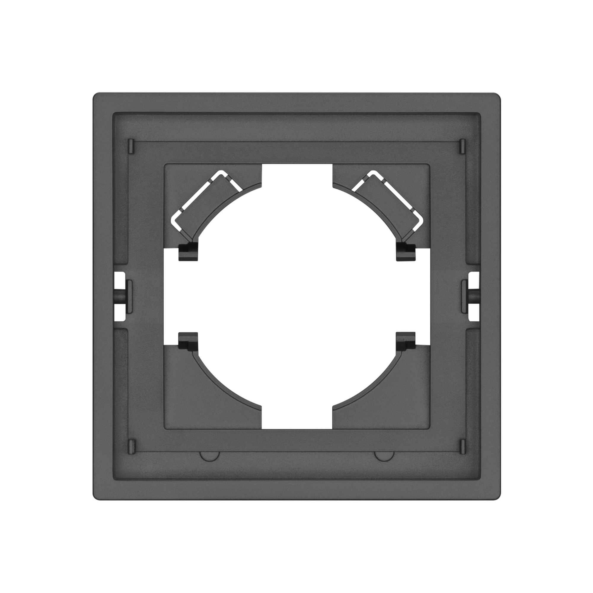 Рамка пластиковая на 1 пост, под встраиваемый механизм. Цвет - серый, с Soft-Touch покрытием.  Среднего уровня герметичности IP20. Ориентация монтажа горизонтальная.