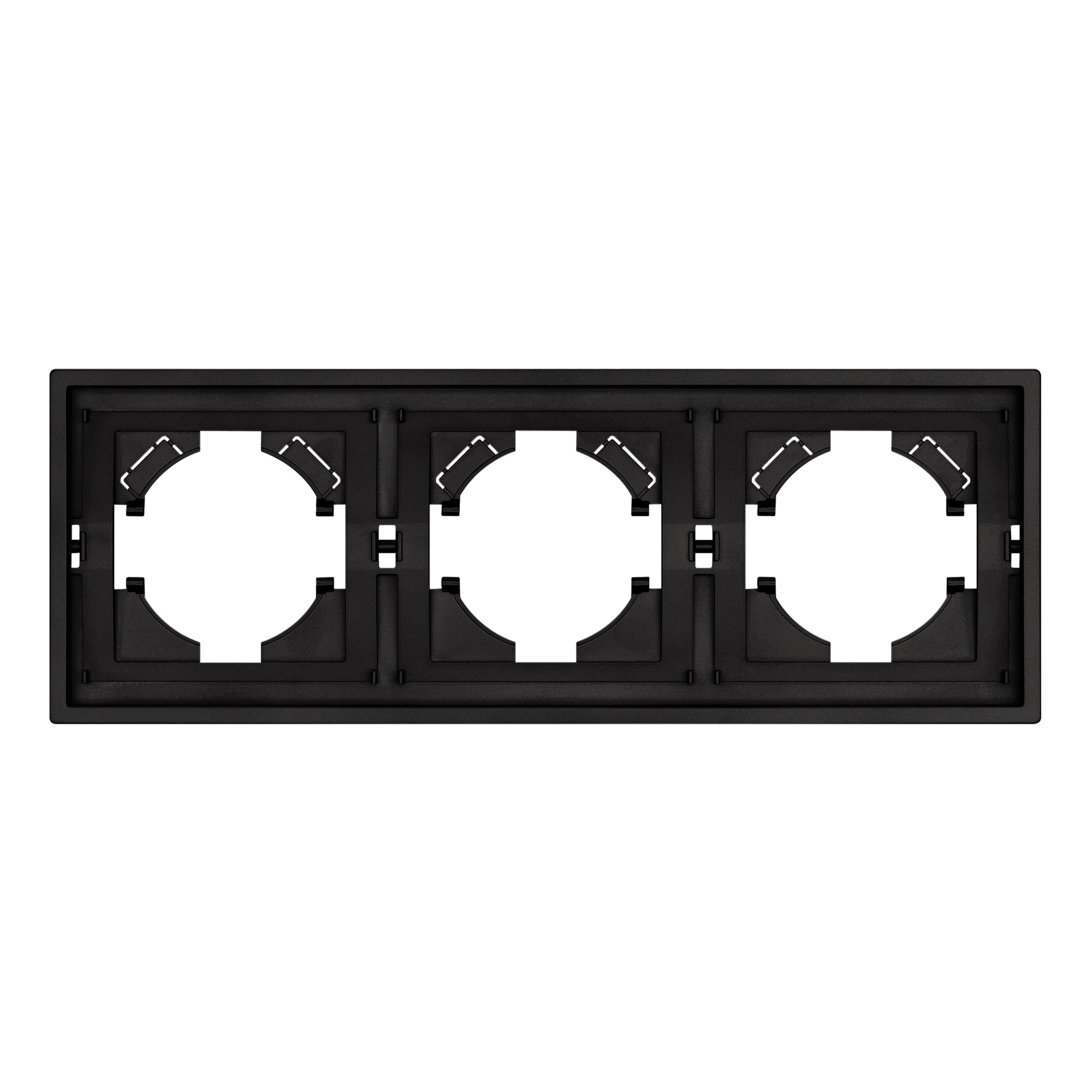 Рамка пластиковая на 3 поста, под встраиваемый механизм. Цвет - черный, с Soft-Touch покрытием.  Среднего уровня герметичности IP20. Ориентация монтажа горизонтальная.