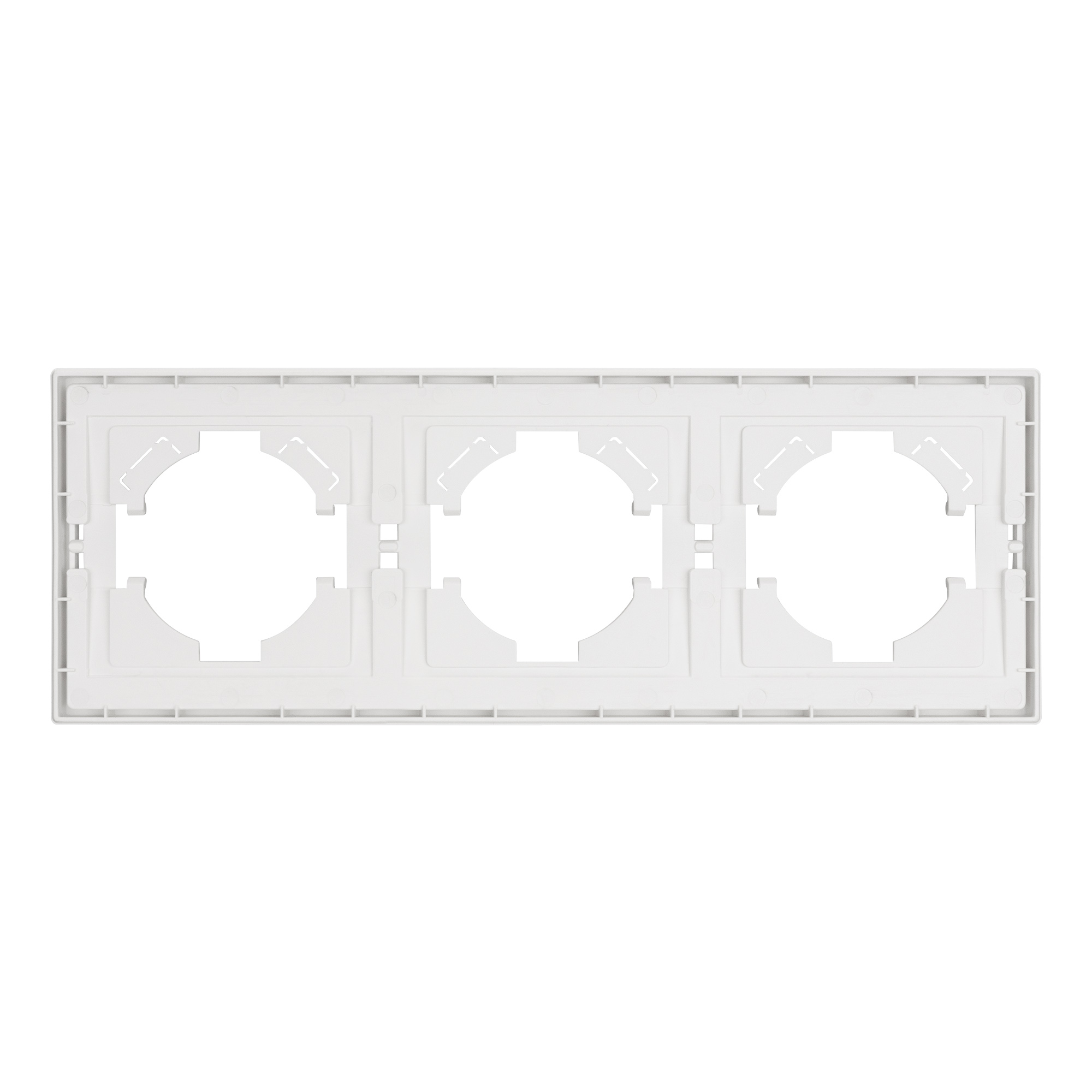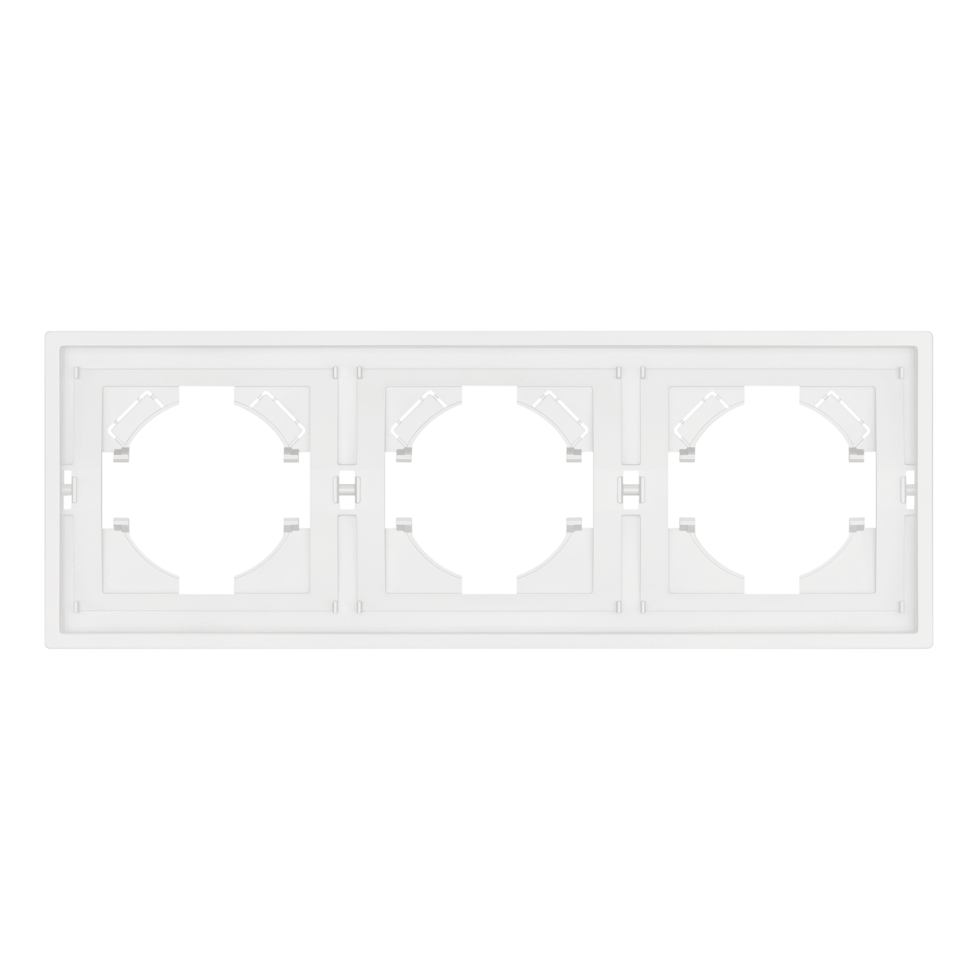 Рамка пластиковая на 3 поста, под встраиваемый механизм. Цвет - белый, с Soft-Touch покрытием.  Среднего уровня герметичности IP20. Ориентация монтажа горизонтальная.