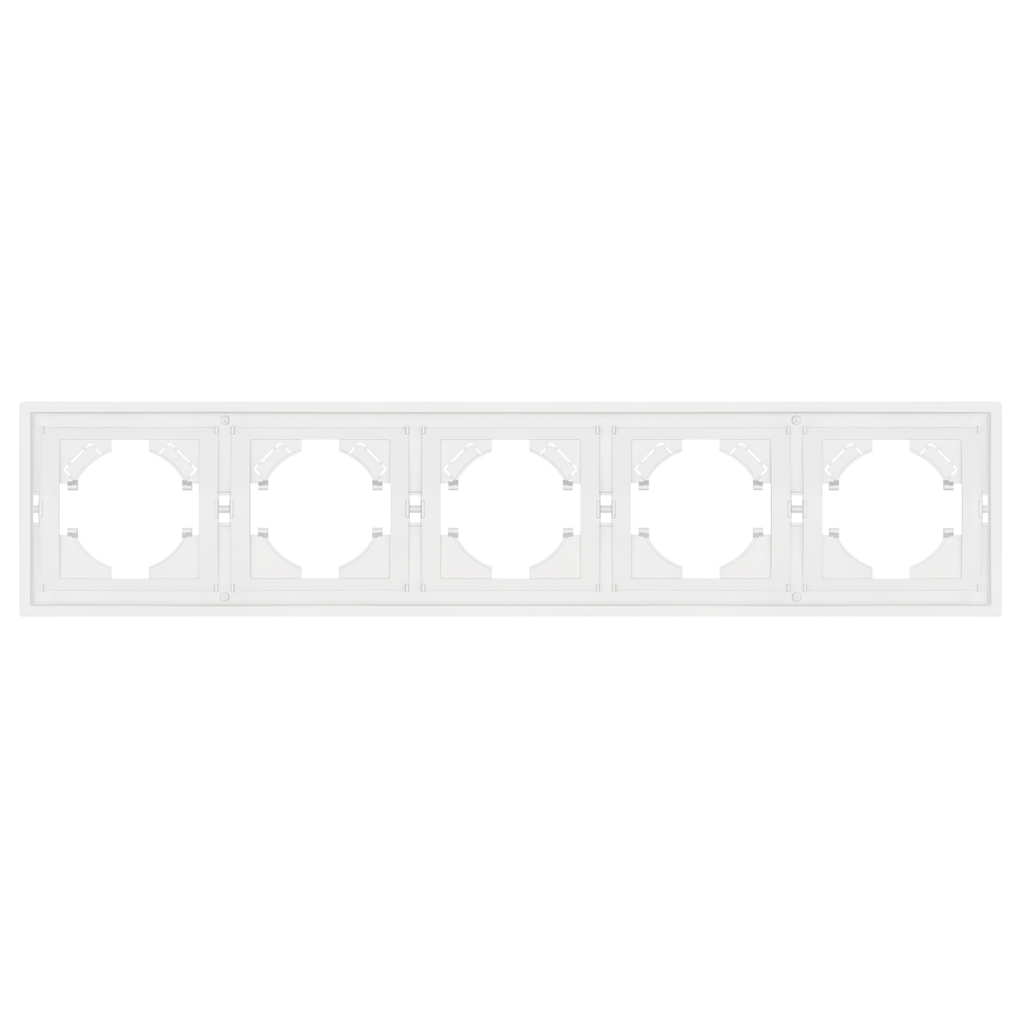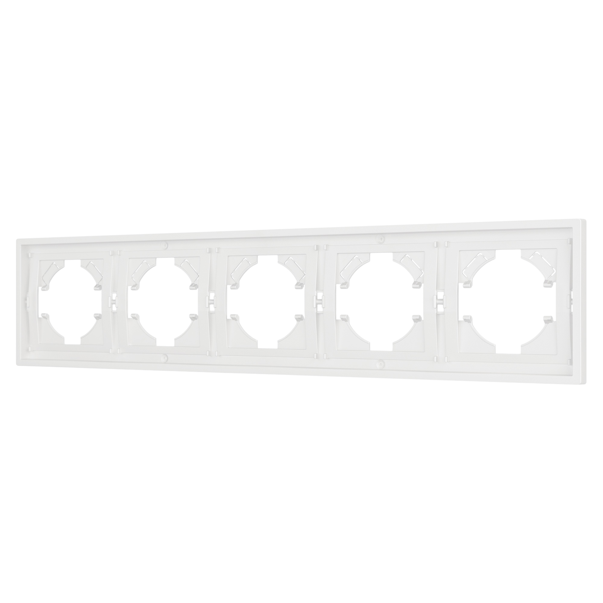 Рамка пластиковая на 5 постов, под встраиваемый механизм. Цвет - белый, с Soft-Touch покрытием. Среднего уровня герметичности IP20. Ориентация монтажа горизонтальная.