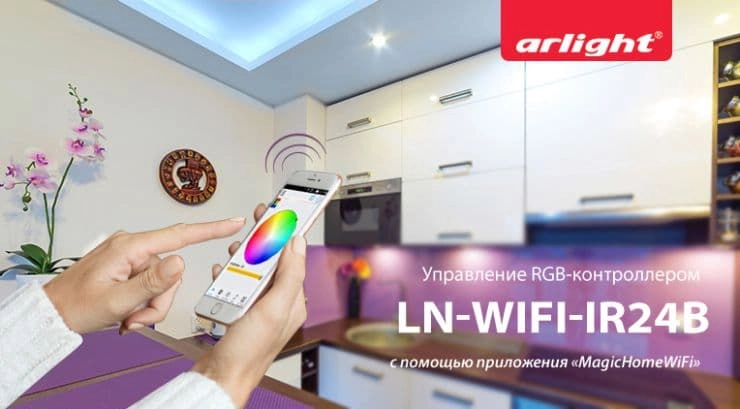 Ассортимент контроллеров Arlight пополнился новой моделью LN-WIFI-IR24B-2, позволяющим управлять многоцветными светодиодными лентами посредством смартфона на базе платформ iOS и Android.